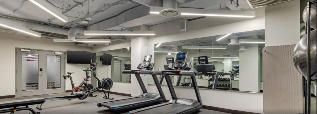 L’edificio che ospita l’albergo ha 10 piani e si allunga con una pensilina coperta sul marciapiede, come tipico di molti alberghi della costa est americana. Originariamente costruito parecchi anni fa con appartamenti, è stato poi convertito in hotel nel è soggetto a una recente ristrutturazione nel 2024 con adeguamenti agli standard più recenti e lavori di modernizzazione significativi. Oggi si presenta infatti molto nuovo, comodo e con ampi spazi nei corridoi e nelle camere. Soltanto la hall è piuttosto raccolta, con una piccola reception a sinistra degli ascensori, un angolo caffè con un paio di poltroncine e un divano: sono disponibili gratuitamente per gli ospiti anche i pop corn prodotti a getto continuo.