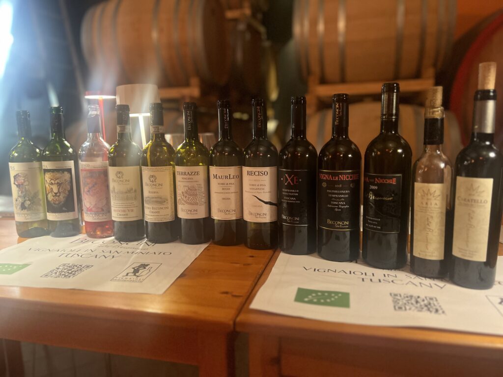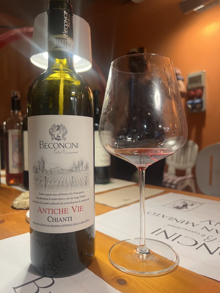 Nel tepore dorato di un pomeriggio settembrino, accompagnato da Claudia Marinelli, fine conoscitrice delle Terre di Pisa, ho percorso l’antica Via Francigena fino a San Miniato, dove sorge la Cantina Beconcini. Un luogo di rara autenticità, in cui la memoria agricola toscana si fonde con una visione enologica sperimentale e colta.