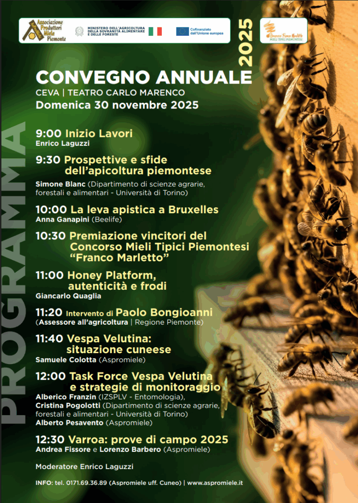 Quest’anno Aspromiele organizza il suo Convegno Annuale a Ceva (Teatro Carlo Marenco – Domenica 30 novembre), un appuntamento ormai centrale per il confronto tra apicoltori, tecnici, ricercatori e Istituzioni sul presente e sul futuro dell’apicoltura piemontese.