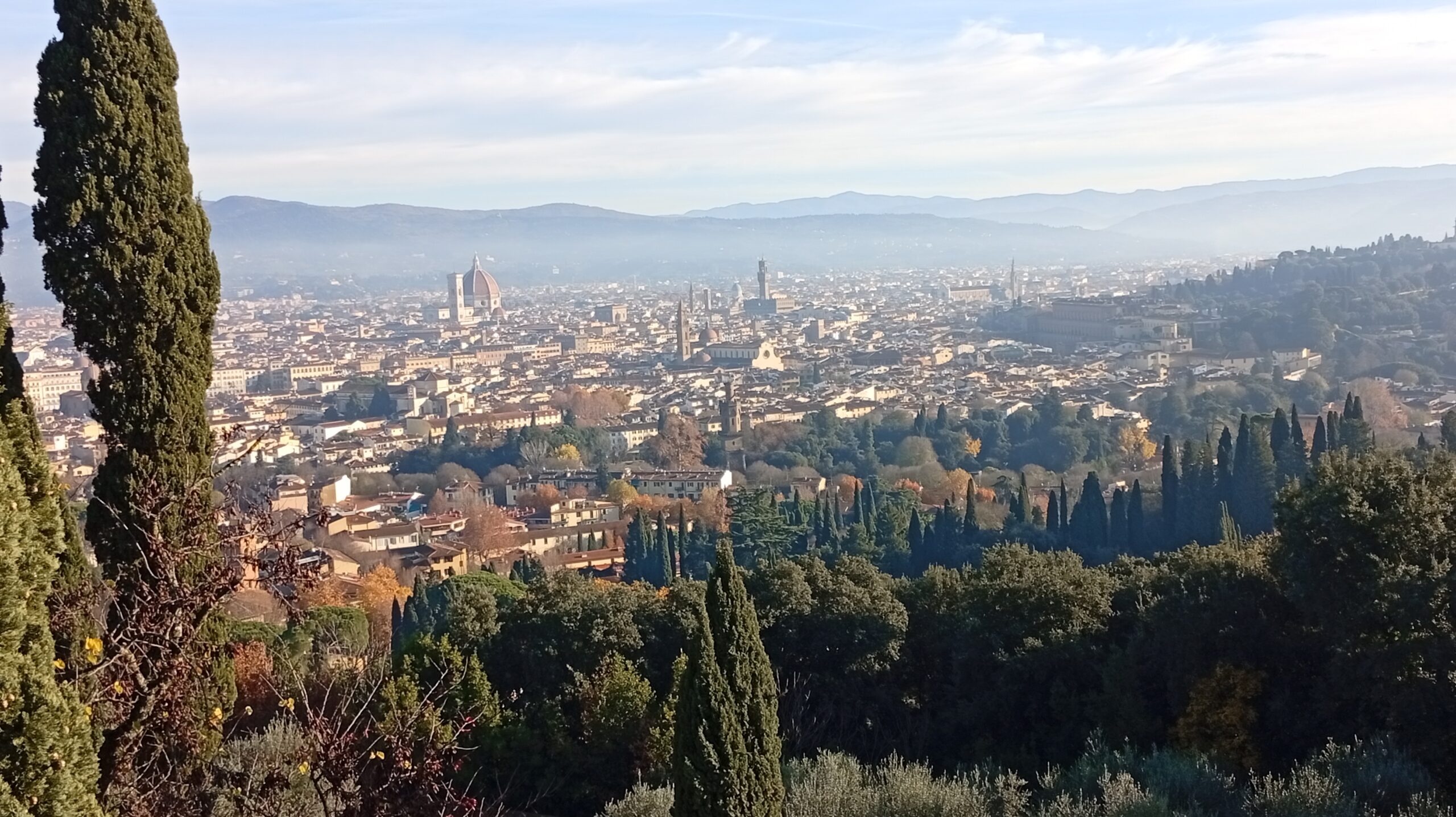 Torre di Bellosguardo domina Firenze da una posizione che ne definisce immediatamente l’identità: un’altura quieta e leggermente defilata, a pochi minuti dal centro, ma sufficientemente distante per restituire la sensazione di trovarsi in un’altra dimensione. Da un lato la città, con la sua trama di tetti, campanili e cupole che emergono nitidi; dall’altro le colline toscane, morbide, silenziose, segnate da oliveti e da una vegetazione che ricorda i paesaggi di Leonardo. L’insieme forma un quadro naturale che sembra sospeso, e in cui la struttura appare perfettamente inserita, come se fosse sempre appartenuta a questo luogo.