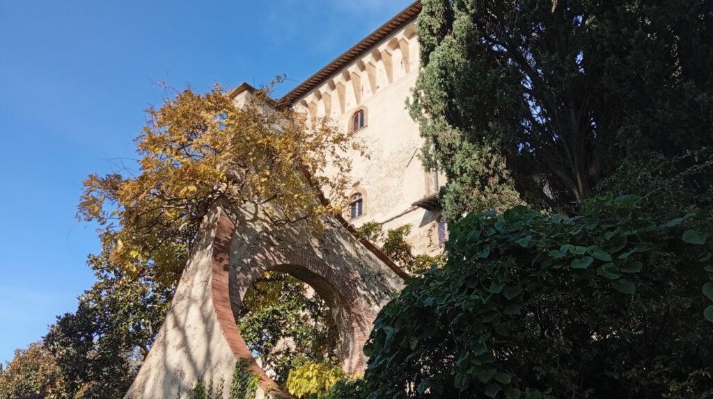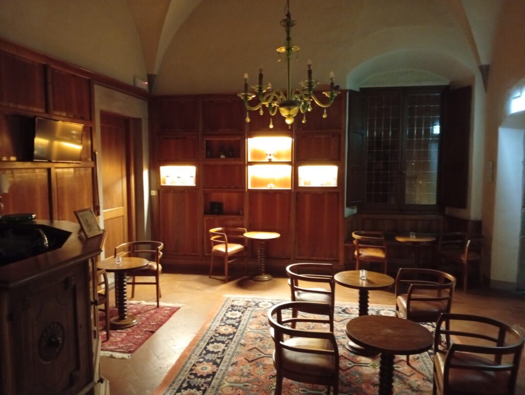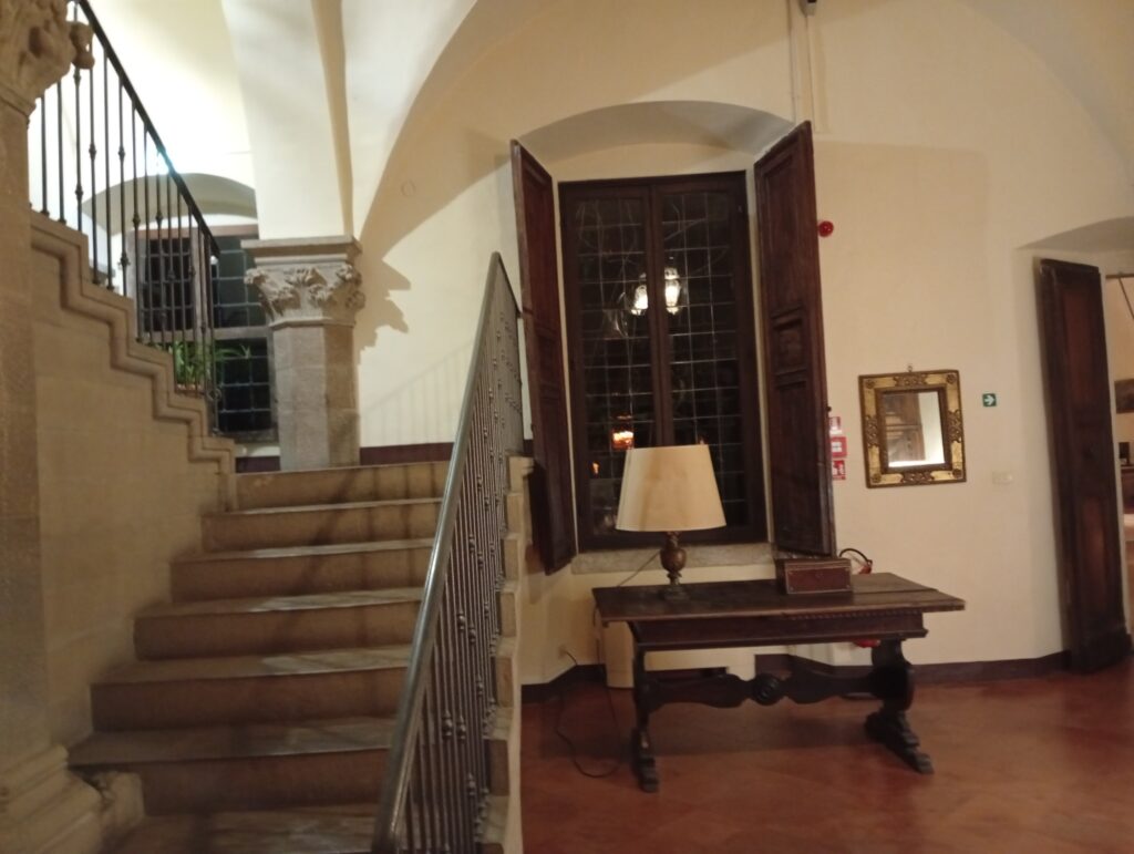 Il complesso attuale è un resort urbano, definizione che sintetizza bene la sua natura: non è un albergo isolato nella campagna, ma una residenza cittadina immersa in un parco vastissimo, quasi dieci ettari di verde tra vigneto, oliveto e giardini storici. L’ingresso introduce subito in un contesto silenzioso, in cui il rumore della città scompare completamente. La struttura si presenta come una villa elegante, raccolta, mai ostentata. Le sedici camere e suite, insieme a un appartamento indipendente, sono distribuite in ambienti che conservano tracce delle diverse epoche, con dettagli architettonici originali, viste che si aprono sulla città e spazi interni studiati per privilegiare la calma. È un luogo che si vive lentamente, lasciandosi accompagnare dal silenzio, dalla luce che cambia sulle colline, dalle passeggiate nel parco che in estate profuma di erbe mediterranee.