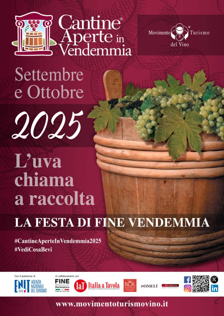“La vendemmia è già iniziata in alcune zone d’Italia e con lei la volontà delle cantine socie MTV di condividere il momento più importante dell’anno con i wine lover. – Racconta Violante Gardini Cinelli Colombini, Presidente del Movimento Turismo del Vino – Le stime parlano della 2025 come una vendemmia eccezionale, con uva di ottima qualità ed una quantità più alta dell’anno precedente. Vogliamo condividere la nostra gioia con chi visita le nostre cantine e, affinché ogni esperienza offerta a Cantine Aperte in Vendemmia sia indimenticabile, abbiamo voluto mettere in primo piano i numerosi prodotti enogastronomici italiani d’eccellenza, passando di regione in regione, con un’attenzione particolare ai piatti della vendemmia che vengono offerti in questo speciale periodo in abbinamento ai nostri vini. Storie e racconti che parlano di tradizioni uniche, dal calice al piatto, merende che raccontano aneddoti inediti, il clima di festa della vendemmia, il profumo dell’uva e le tavolate conviviali memorabili per grandi e piccini, faranno di Cantine Aperte in Vendemmia un evento imperdibile in tutta l’Italia. “