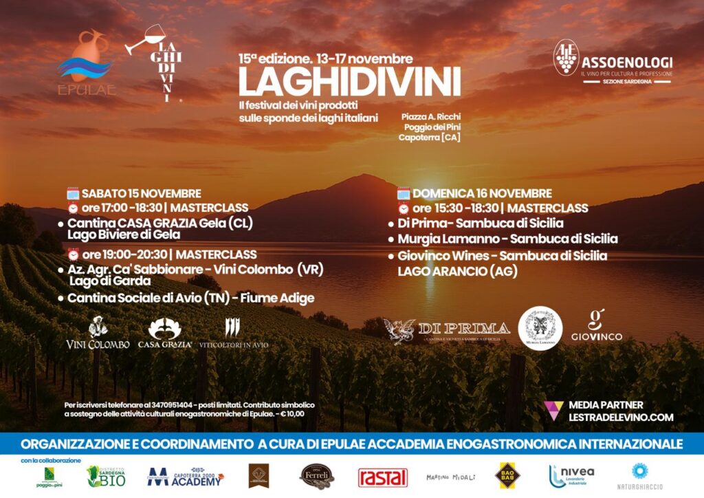 Dopo la serata dedicata a Moda, Cibo e Colori, un percorso multisensoriale guidato da Alessandra Sorcinelli presso lo show room Martino Midali a Cagliari, nel corso della quale è stato presentato il libro “Vocabolario del cibo” della sociologa e storica della gastronomia Sandra Ianni, la quindicesima edizione di “Laghidivini” Festival dei vini prodotti sulle sponde dei laghi italiani, dopo la sua inaugurazione, è proseguita a Poggio dei Pini presso la sede di Epulae Accademia Enogastronomica Internazionale, con due masterclass d’eccezione.