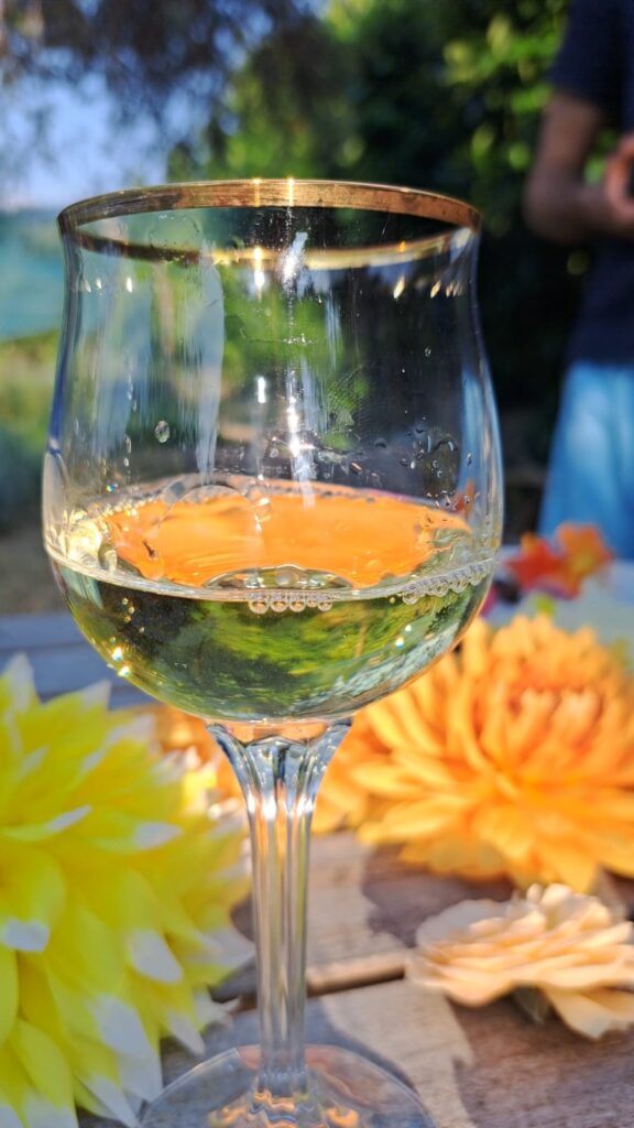 - Un servizio più dinami a braccio , dove i sommelier girano tra gli inviati offendo piattini con 2 varietà di fiori, intratenendo ed inviato all’assaggio
