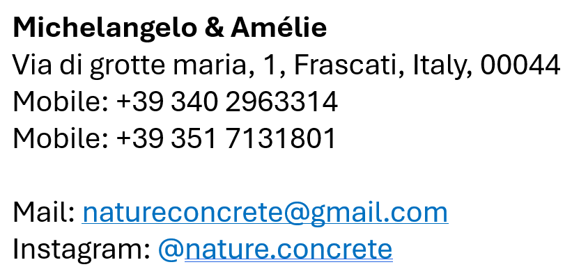 Nature Concrete non si ferma: stanno progettando corsi per formare nuovi Flower Sommelier, bomboniere edibili, tisane floreali da servire come digestivo, pacchetti per locali e ristoranti, degustazioni firmate itineranti per turisti gourmet.