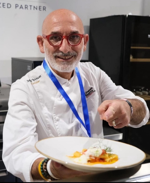 Ebbene sì perchè il suo personaggio, che sembra uscito da un cartoon, con i suoi occhi che guizzano vivaci dietro grandi lenti colorate, il pizzetto sale e pepe e quella inflessione dialettale sicula con cui dà vita alla sua performance gastronomica, nasce proprio durante il Covid. Visual Merchandiser presso la Rinascente di Palermo, costretto come tutti a stare in casa, decide con la complicità della moglie Patrizia, di fare i video mentre cucina i suoi primi. Dalla pasta con le vongole a quella con le cozze, dalla pasta aglio e olio a quelle con la mollica cosidetta “atturrata”, ovvero “abbrustolita” in padella, Salvo Terruso nel giro di un anno dal suo esordio 2.0 conquista centinaia e centinaia di follower ( oggi ne conta oltre 115mila su Instagram) che gli scrivono, gli chiedono consigli. E fortunatamente trascorso il periodo di chiusura forzata, inizia ad esibirsi dal “vivo”. La cucina è il suo podio, il mestolo, la sua bacchetta con cui dirige la sinfonia di sapori tra la pentola che bolle in attesa di “calare” la pasta e lo sfrigolio della padella, sottofondo profumato alla sua voce. Con verve da consumato gastroattore, condivide con gli astanti i suoi ricordi di quando era bambino e si nascondeva sotto il tavolo dell’osteria che i nonni Nina e Peppino avevano a Monreale. Discolo com’era, venne soprannominato dalla nonna che faticava a tenere a bada questo scricciolo di nipote esuberante, Il Pastaio Matto. “Eh già- racconta-mi bastava un po’ d’acqua e farina per realizzare le forme più strane di pasta e se da un lato era un modo per tenermi buono mentre gli avventori affollavano l’osteria, dall’altra mi ha trasmesso i valori di una cucina autentica, vera, senza fronzoli, dove l’ingrediente principe è l’amore. E quando ho scelto il cosiddetto nickname, non ho avuto dubbi- continua- Pastaio Matto, calzava a pennello ed era un modo per ricongiungermi alle mie radici, al mio profondo legame con i miei nonni che mi hanno insegnato che nella vita, come nella cucina, occorre essere veri, per essere credibili”. Le sue sono per lo più ricette della tradizione e non per mero trend di moda oggi purtroppo largamente abusato, ma perchè restituiscono, nel piatto, le emozioni”. Di certo non manca la sua vis creativa e personale e c’è anche spazio per le ricette dei suoi nonni come la carrettiera maritata con melanzane o la vongolata ubriaca “che nonno Pippino- dice ridendo- innaffiava con il vino spillato direttamente dalla botte”. Ma da quando è diventato una star dei social in cucina, non mancano richieste di collaborazioni con aziende ed anche di fare, come lui si definisce “il cuciniere” a domicilio. “Non sono uno chef- dice prontamente- perchè non ho gli studi, né la preparazione tecnica. Sono semplicemente un cuciniere che con umiltà ridà vita ad una cucina ormai in via di estinzione”. Attento agli ingredienti, non manca mai il formaggio. La Tuma, il Maiorchino, il Primo Sale siciliano, sono la cifra dei suoi piatti che declina da provetto showman. Diventando così, tra i maccarruna ed una battuta spiritosa, ambasciatore della pasta, piatto principe della tradizione gastronomica siciliana. In patria e anche oltre lo Stretto. Protagonista con un suo cooking show al Fancy Food 2023 di New York, ma anche al Vinitaly di Verona, al Mediterraria di Catania, al Food&Artisan Days 2023 di Palermo e al Taormina Sciarm 2023 dove lo chef Carmelo Carnevale dell’ICC gli ha riconosciuto un attestato di merito. Dal 2023 a luglio 2024 è stato lo chef ufficiale del Festival del Cinema Italiano che si svolge a Milazzo cucinando per diversi attori, registi, e addetti ai lavori del cinema e della musica e premiato come “Best Cooking Show”dal giornalista ex direttore della Rai Fabrizio del Noce. Oltre ad occuparsi di cooking show, consulenze e collaborazioni food, quest’anno ha registrato 15 puntate insieme ad attori comici per Telespazio Messina Nazionale 24 show, un programma di cabaret e pasta, visibile anche nel resto d’Italia. E, tra gli altri progetti a cui è particolarmente legato, il laboratorio di cucina con persone autistiche dai 7 ai 25 anni organizzato dal Distretto di Azione Solidale Autismi Cooperativa Sociale e AGSAS Onlus in sinergia con Mezzogiorno Foundation. Ad accompagnarlo, la moglie Patrizia e se gli chiedete qual è il complimento più bello che abbia ricevuto finora, il Pastaio Matto risponde con un largo sorriso : ” quello dei miei nipoti che mi rendono felice quando fanno anche la scarpetta nel piatto cucinato per loro. Fino all’ultimo filo di pasta “.