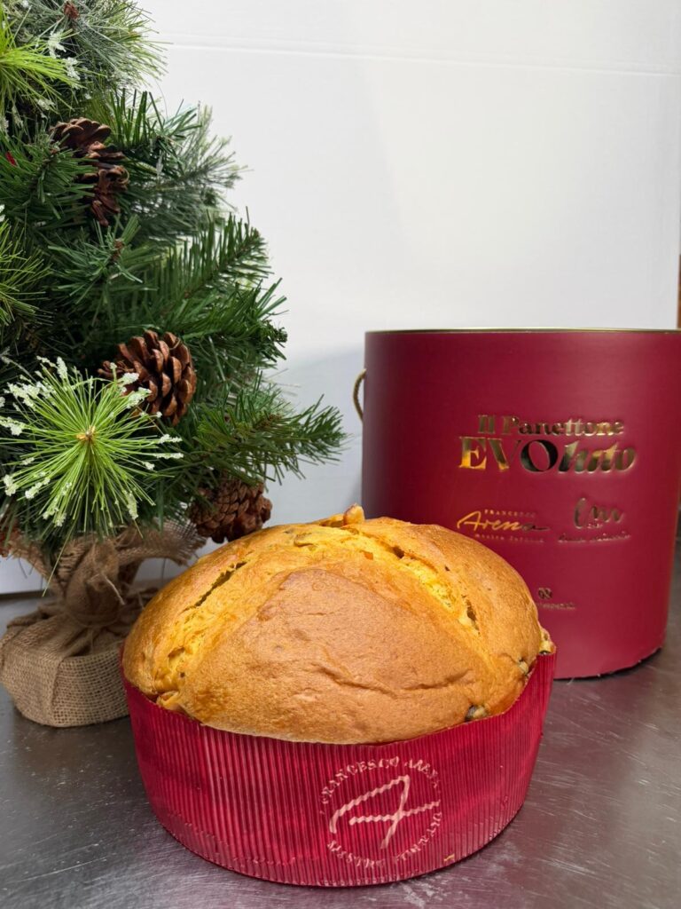 Il Natale 2025 si fa più buono e “genuino” con “EVOluto”, il Panettone all’olio extravergine di oliva ideato dai due Ambasciatori del Gusto Francesco Arena e Luca Miuccio. Il grande lievitato delle feste si evolve e va incontro alle esigenze salutistiche e ai dettami della Dieta Mediterranea, diventa ancora più leggero e digeribile, grazie all’utilizzo dell’olio extravergine di oliva siciliano che avvolge il panettone con la sua morbidezza mediterranea. Buono, salutare, ricco di polifenoli, l’olio evo ha effetti benefici per la salute, come la prevenzione di malattie cardiovascolari, tumori e sindrome metabolica.