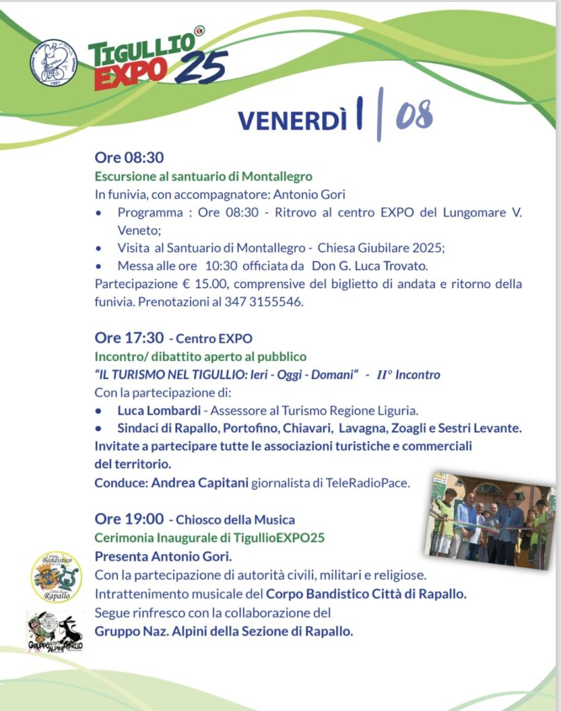 Il sindaco Elisabetta Ricci aggiunge: “TigullioEXPO25 non è solo una vetrina, ma un’occasione di incontro, scoperta e crescita condivisa. Rapallo vi aspetta, più viva e aperta che mai”
