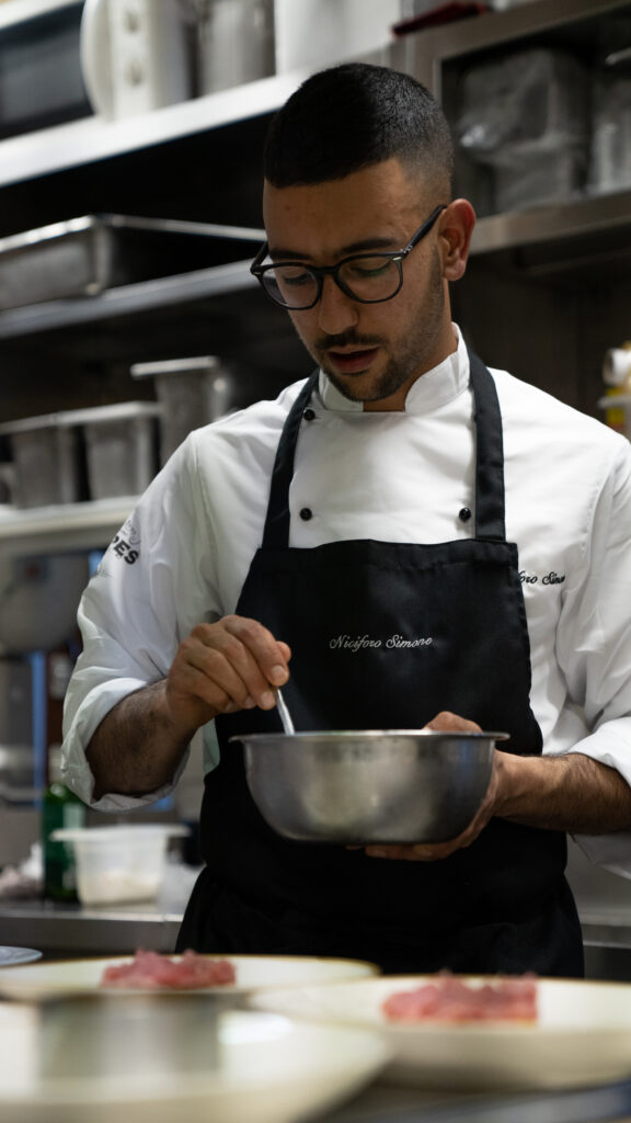 Nato lungo la pittoresca costa jonica della Calabria, a Roccella Jonica, Simone ha respirato fin da bambino l’atmosfera calda della cucina di casa. È lì che la curiosità per i profumi, le storie e l’armonia dei piatti fatti in famiglia gli ha acceso la scintilla che, anni dopo, sarebbe diventata il suo mestiere. Crescendo ha capito che la cucina sarebbe diventata la sua vera voce per parlare di sé e della tradizione, ma anche innovare, senza dimenticare il senso di appartenenza.