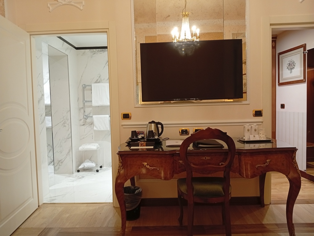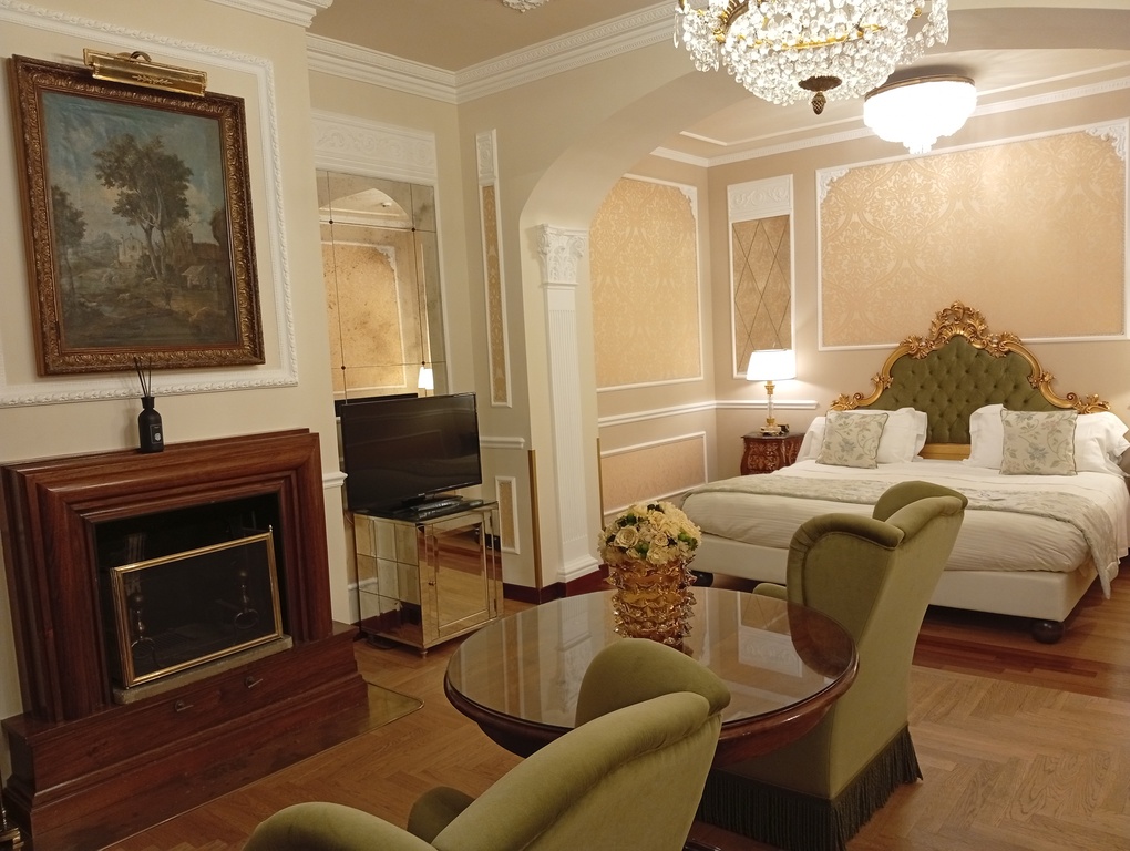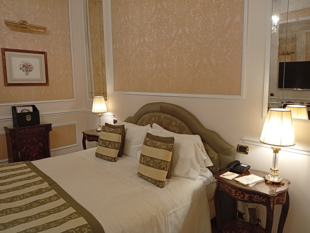 La struttura diretta da 15 anni da David Foschi propone 73 unità ricettive tra camere e suite diverse fra loro, ciascuna arredata con mobili d’epoca, parquet e dettagli di pregio che garantiscono un’atmosfera classica e calibrata sul lusso discreto. Le tipologie spaziano dalle Classic e Superior fino a Deluxe, Grand Deluxe, Junior Suite e Suite: alcune sistemazioni offrono viste sulla piazza e sui monumenti adiacenti, mentre ogni camera è dotata di sale da bagno moderne e spaziose, macchinetta per il caffè, minibar, connessione wi-fi e servizio in camera. In tutte le tipologie le stanze hanno dimensioni generose: sono disponibili anche soluzioni pensate per famiglie, come le family room e i duplex, con metrature e composizioni adatte a nuclei più numerosi.