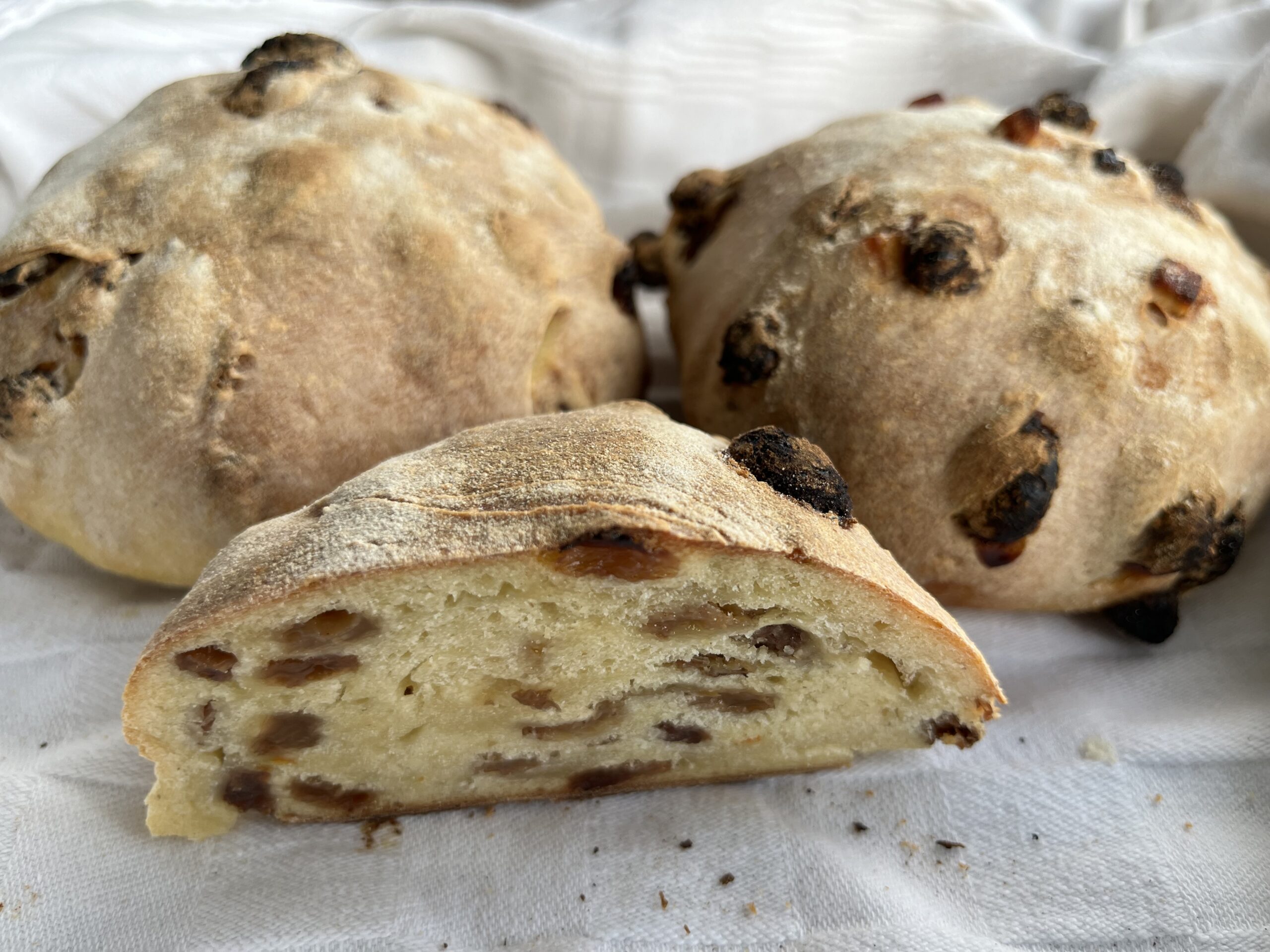 E così nacque su pani arrubiu, un pane ricco e sostanzioso, colorato di rosso dall’uvetta e profumato da zafferano, dalla scorza d’arancia e dai canditi.